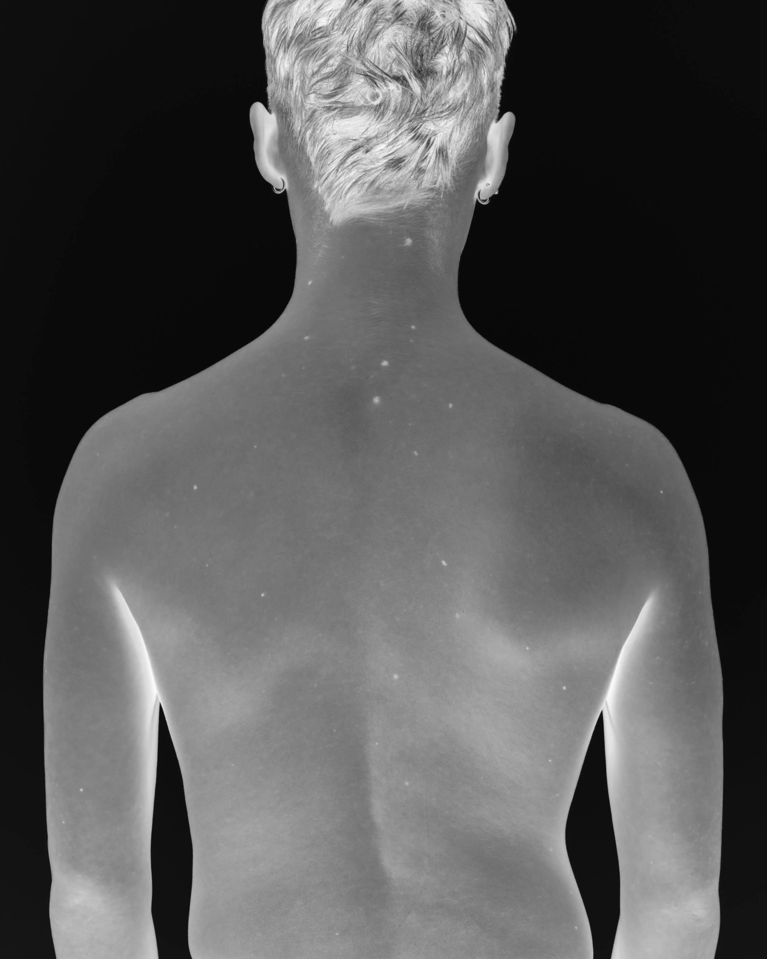 Yet therein lies a paradox: if everyone is marked by their own unique pattern, uniqueness itself becomes a universal trait, blurring the line between individuality and commonality. By inverting the images, moles become the brightest elements in each composition, drawing attention to the organic patterns that emerge. Skin becomes a living canvas-both intimate and shared.